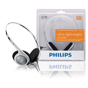 PHILIPS HOOFDTELEFOON Een ultralichte hoofdtelefoon voor langdurig gebruik, met Bass Beat-openingen voor een rijk, diep geluid.
