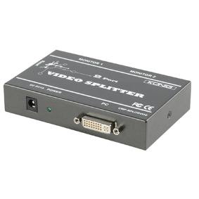 KÖNIG 2 POORTS DVI-SPLITTER Professionele DVI-splitter om beelden van een PC met DVI grafische kaart perfect weer te geven op 2 monitoren of projectoren die zijn voorzien van een DVI-aansluiting. Door de hoge kwaliteit van de verdeler zal bij het splitsen