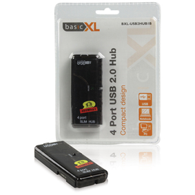 basicXL 4-POORTS USB 2.0 HUB Creëer snel en eenvoudig extra USB poorten met deze 4 poorts USB 2.0 hub. Dankzij het compacte formaat neem je hem eenvoudig mee in je notebook tas, en de oprolbare kabel zorgt ervoor dat je kabel niet in de knoop raakt.