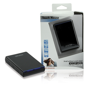 KÖNIG TOUCH MOUSE Bedien uw PC in stijl met deze elegant vormgegeven muis. De muis heeft een volledig vlakke bovenkant met 2 geďntegreerde knoppen en een touchpad waarmee je in alle vier de richtingen kunt scrollen.