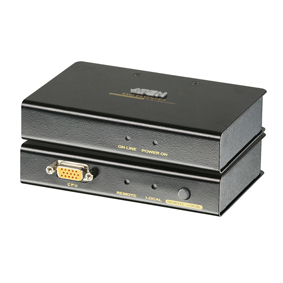 ATEN KVM EXTENDER Met de ATEN CE250A kunt U uw systeem of KVM via een lokale en een externe console tot 150m afstand bedienen. Dit produkt is ideaal voor fabrieken of elke installatie waar de console zich op een makkelijk bereikbare plaats bevindt maar waar de systeeminstallatie op een veilige plaats geplaatst moeten worden, weg van stof of andere invloeden.