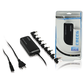 KÖNIG 90 W NOTEBOOKADAPTER MET AUTOMATISCHE VOLTSELECTIE Deze 90 W notebookadapter wordt geleverd met 9 pluggen die geschikt zijn voor de meeste notebookmodellen. De adapter is ook zeer gemakkelijk in gebruik. Wanneer er een plug op wordt aangesloten, sel