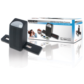 KÖNIG USB NEGATIEF- EN DIASCANNER Met deze scanner is het mogelijk om oude foto negatieven en dia’s te digitaliseren. Na het installeren van de software en het aansluiten via USB 2.0 zijn oude foto’s op te slaan op de computer. Scant een foto binnen een seconde. Inclusief 1 negatievenhouder, 1 dia houder, schoonmaak borsteltje en Arcsoft Photoimpression 6. Voeding via USB. • Interface: USB 2.0