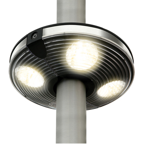 RANEX LED PARASOLLICHT LED lamp met 4 lichtpunten, die je vastklemt aan de paal van een parasol.