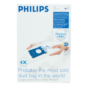 PHILIPS S-BAG LONG PERFORMANCE De s-bag is de originele wegwerpstofzak voor alle cilinderstofzuigers van Philips en de Electrolux Group.
