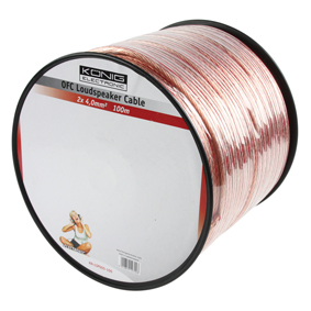 KÖNIG OFC LUIDSPREKERKABEL 2X 4.0 MM˛ 100 M De geleider van OFC koper zorgt voor een kristalheldere overdracht van de geluidssignalen. De transparante mantel is aan één zijde voorzien van een polariteitsmarkering. De kabel is op een handige haspel gerold